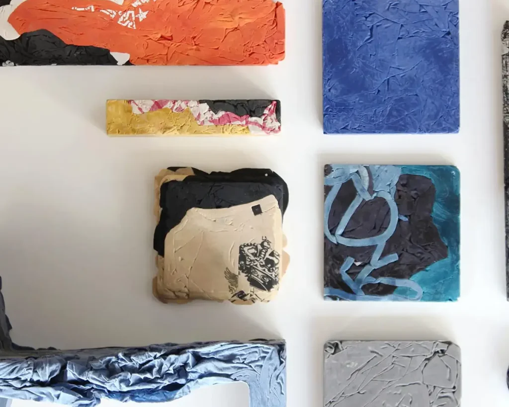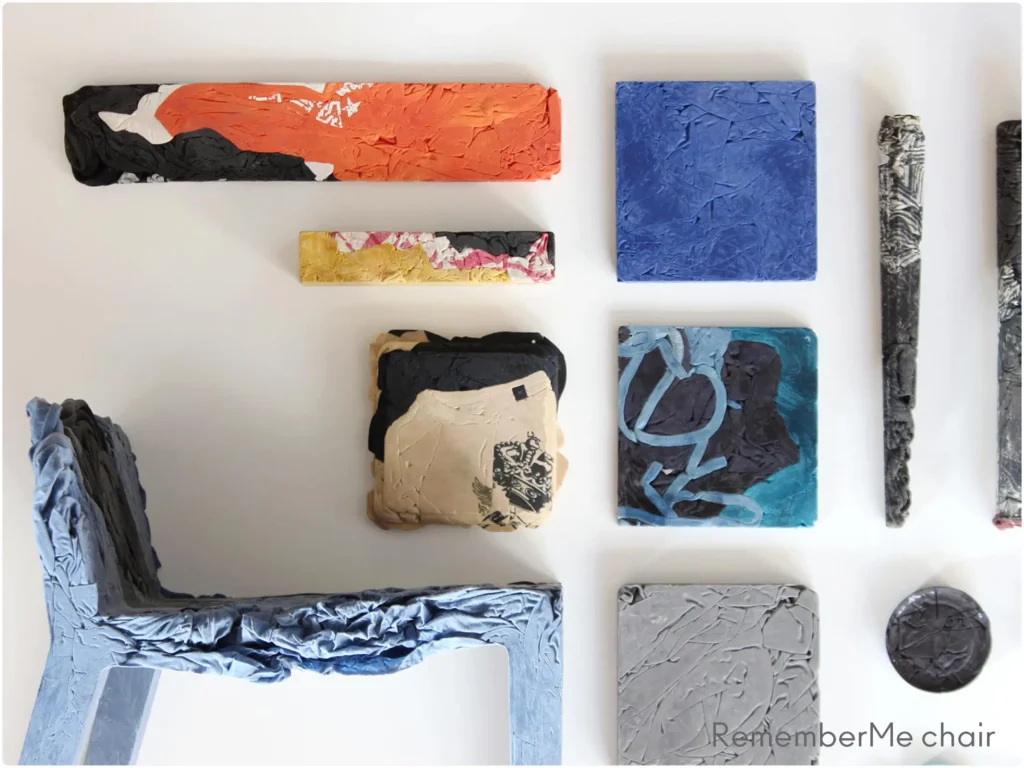 Jeans a T-Shirt forniti dai clienti o quelli scartati dalle aziende produttrici sono utilizzati come materiali per produrre sedie e tavolini bistrot. Uno stampo brevettato da Casamania è il veicolo attraverso cui gli indumenti vengono mescolati a un sottile telaio metallico e a una speciale resina indurente che danno origine a una struttura unica e solida, composta dai ricordi più intimi ed emozionanti.