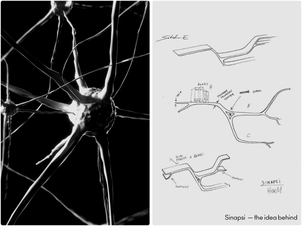 Non serve essere architetti o designer per comprendere l’importanza delle connessioni: tutti ci siamo trovati di fronte a un problema, abbiamo speso del tempo a pensarci, ma all’improvviso, quando meno ce lo aspettavamo, la soluzione ci è venuta in mente come un lampo di genio…lampo provocato dalla nostre sinapsi che si sono “messe in moto”. Queste strutture specializzate sono dei veri e proprio punti di connessione tra i neuroni, che permettono loro di comunicare e di trasmettere informazioni tramite impulsi elettrici e chimici.