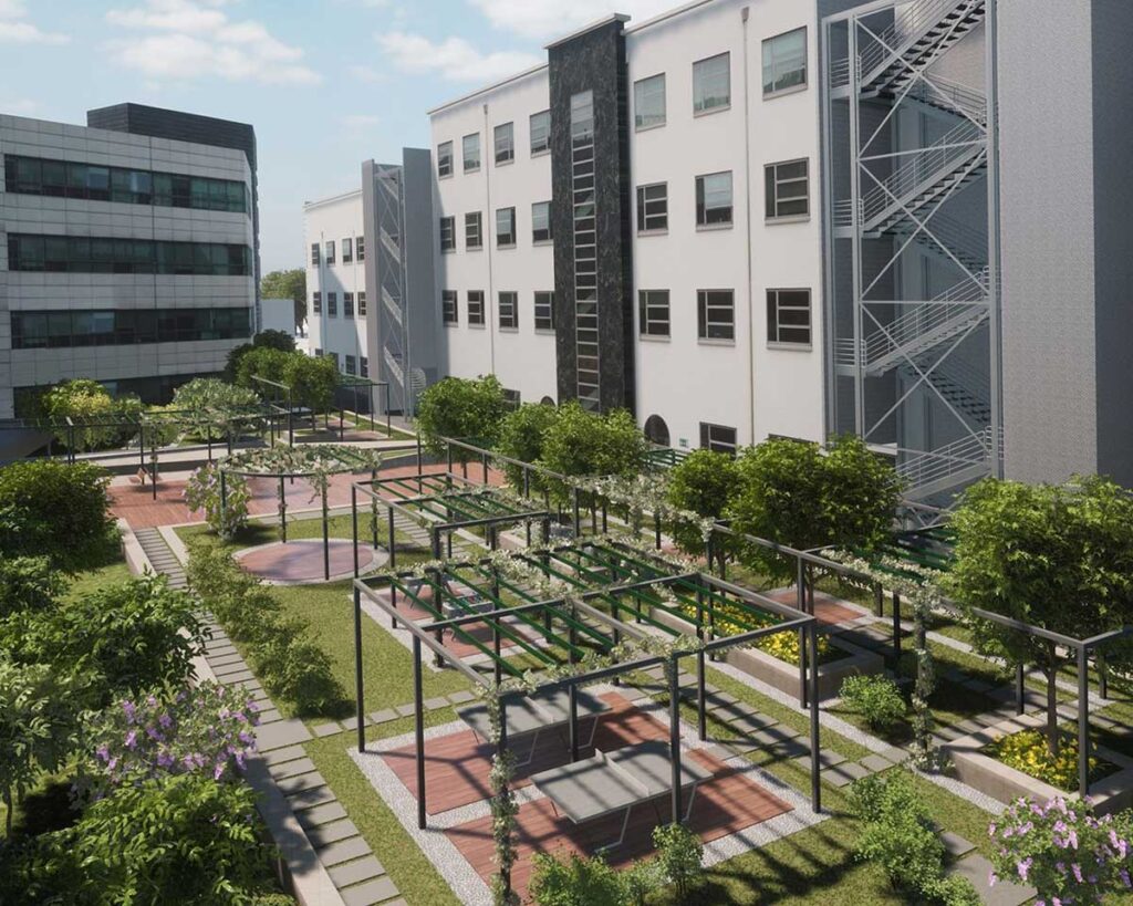Al centro di questa visione si trovano i giardini condivisi come l’Arcipelago e il Labirinto delle Essenze, veri e propri polmoni verdi progettati da Il Prisma che permeano l’intero complesso, offrendo agli occupanti spazi rigeneranti per il relax e la socializzazione.