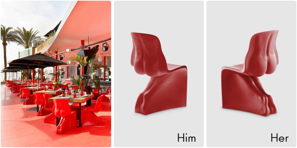 Ispirate alla mitica Panton Chair, ma reinterpretate in chiave antropomorfa, HIM & HER non sono solo complementi d’arredo. Sono corpi, forme sensuali e ironiche che incarnano l’equilibrio – sempre in tensione – tra maschile e femminile, tra funzione e arte. All’Ushuaïa, non si usano. Si vivono.