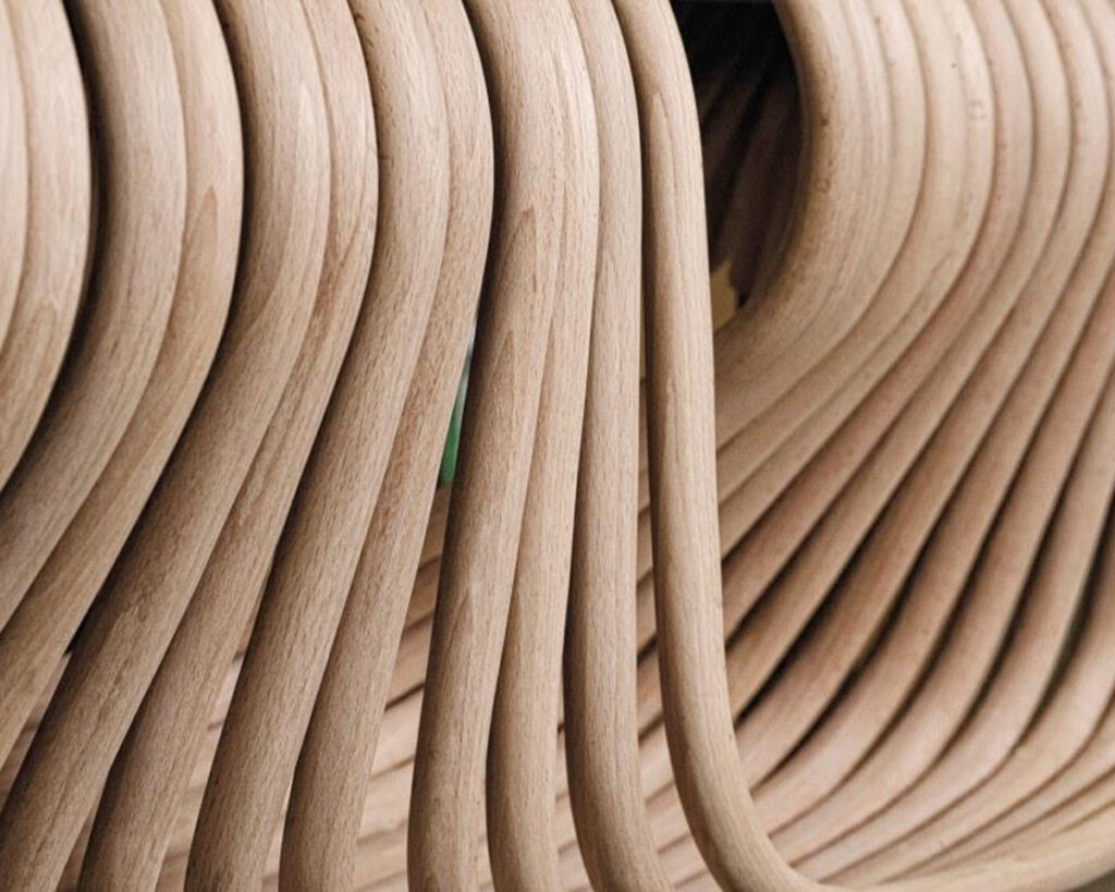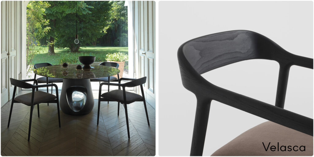 La sedia Velasca di Horm, realizzata in frassino massello curvato, utilizza questa tecnica per dar luogo a una struttura robusta e nel contempo elegante, una seduta dall’aspetto fluido e organico, capace di combinare tradizione e innovazione in un oggetto funzionale e esteticamente piacevole.