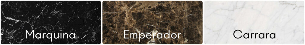 L’Emperador, invece, ci accompagna in territori più caldi. Il più famoso proviene dalla Spagna, dalle regioni di Murcia e Alicante, e si divide in due varianti principali: Emperador Dark, dal fondo marrone scuro punteggiato di venature bianche, beige o dorate; e Emperador Light, più chiaro, con tonalità nocciola e venature delicate. Ma esistono anche versioni di Emperador estratte in Turchia, come il Silver o il Brown, che differiscono per tonalità e venature. Sono marmi dai toni terrosi, eleganti, e capaci di adattarsi tanto ad ambienti classici quanto a quelli contemporanei.