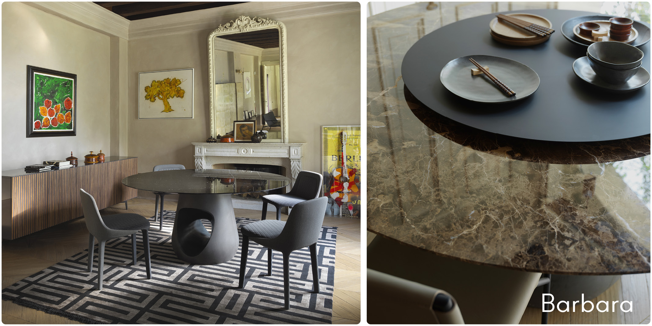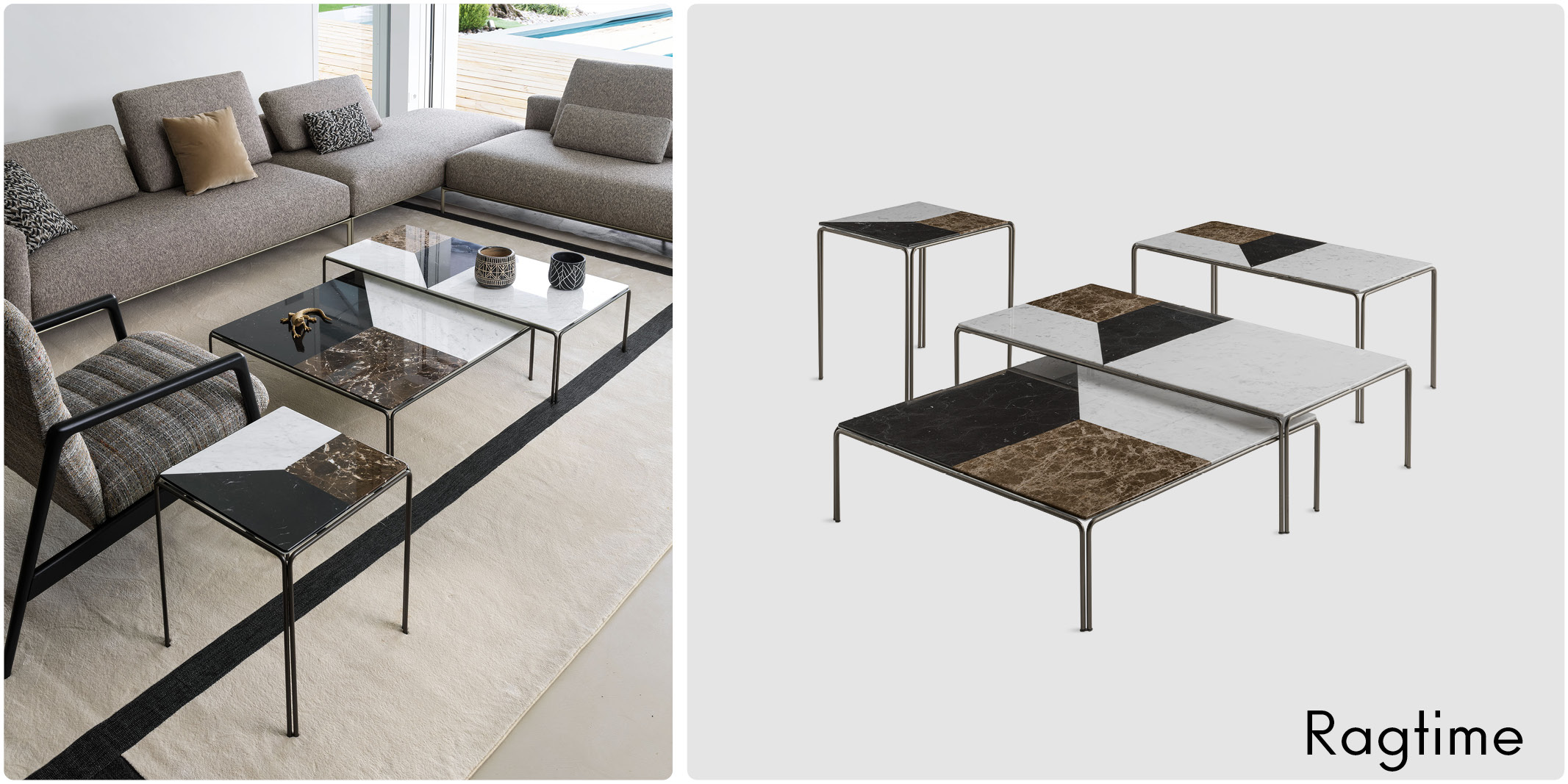 In Horm, li abbiamo scelti per alcune delle nostre collezioni più iconiche: dal tavolo Barbara, che unisce il rigore della forma alla ricchezza della materia, ai tavolini Ragtime, dove la pietra dialoga con il legno e il metallo per raccontare storie nuove.