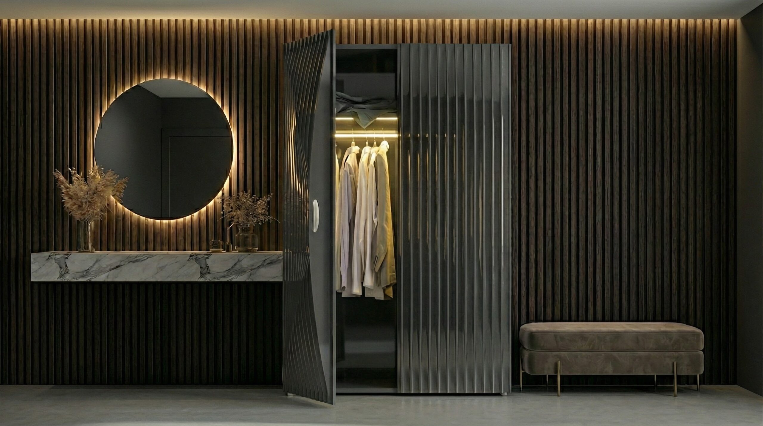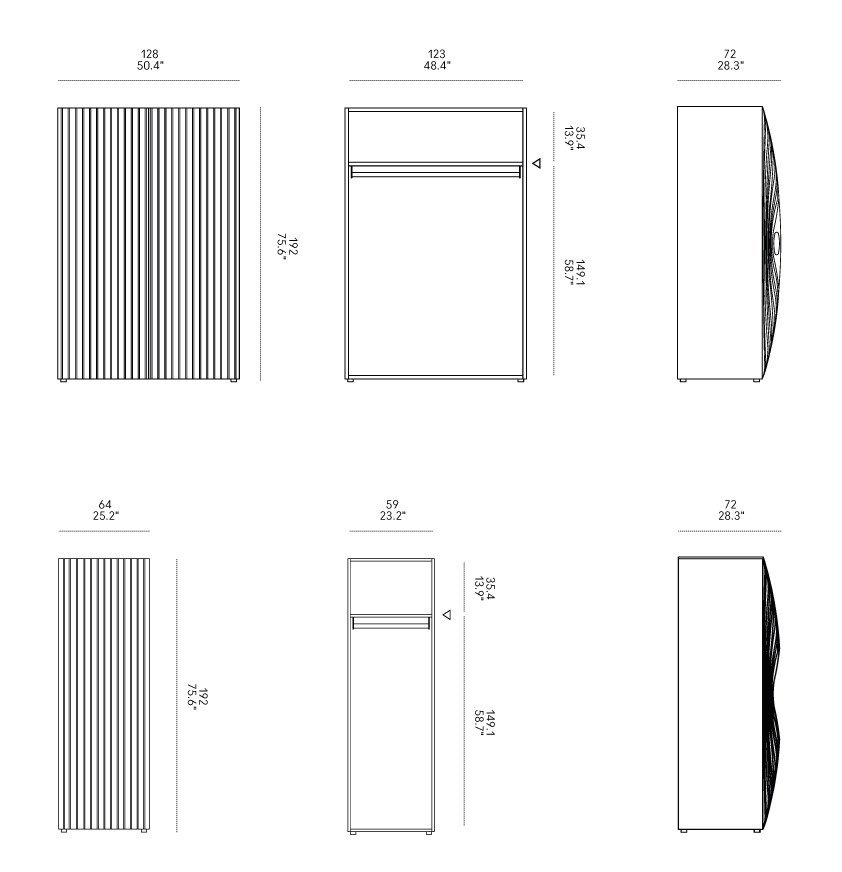 Dietro l’aspetto scultoreo, Blend conserva tutta la capienza e la funzionalità di un armadio tradizionale, offrendo un’ampia capacità di contenimento e soluzioni interne personalizzabili.