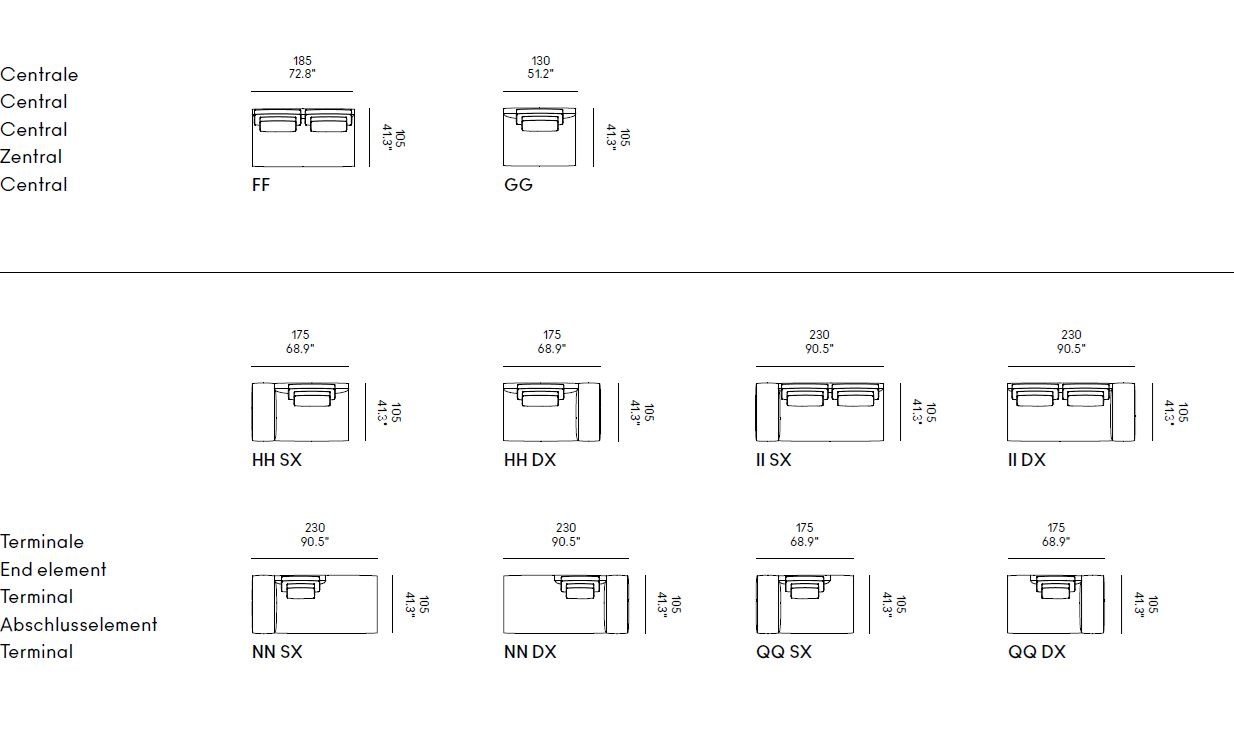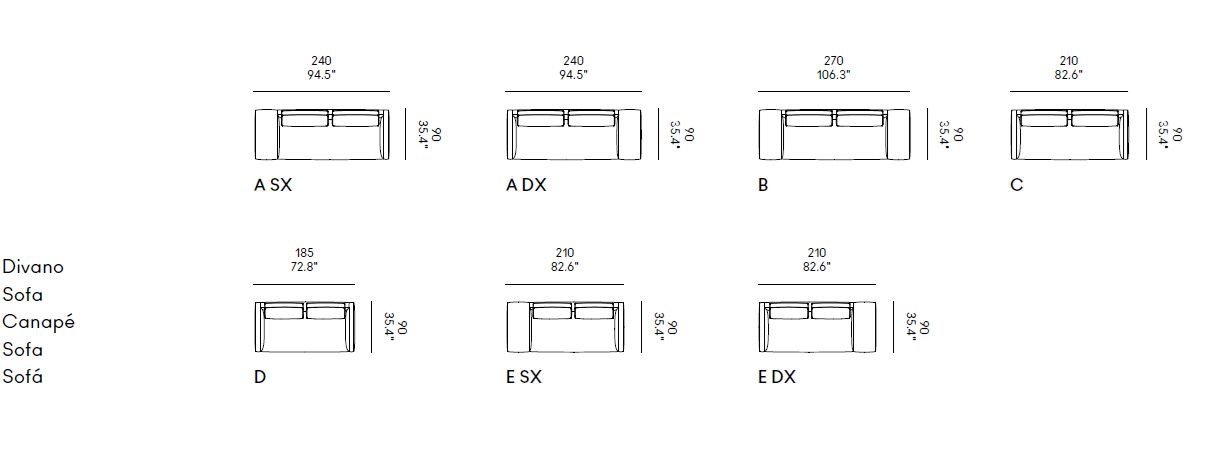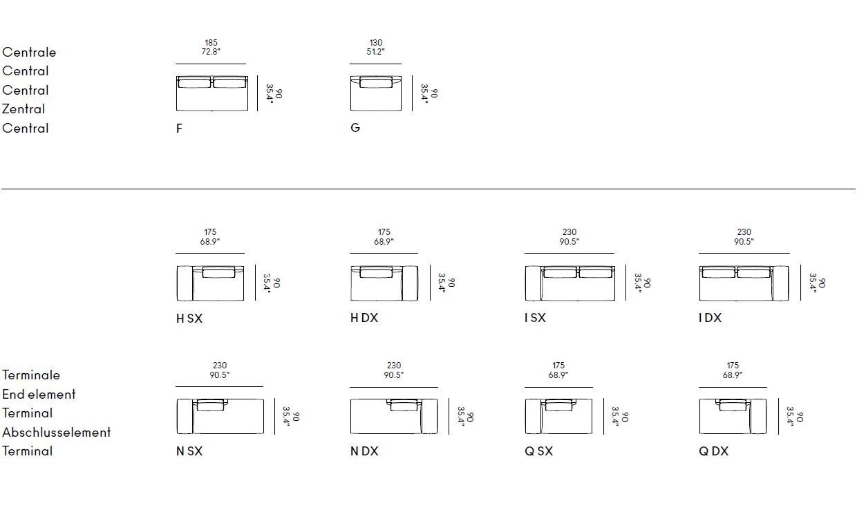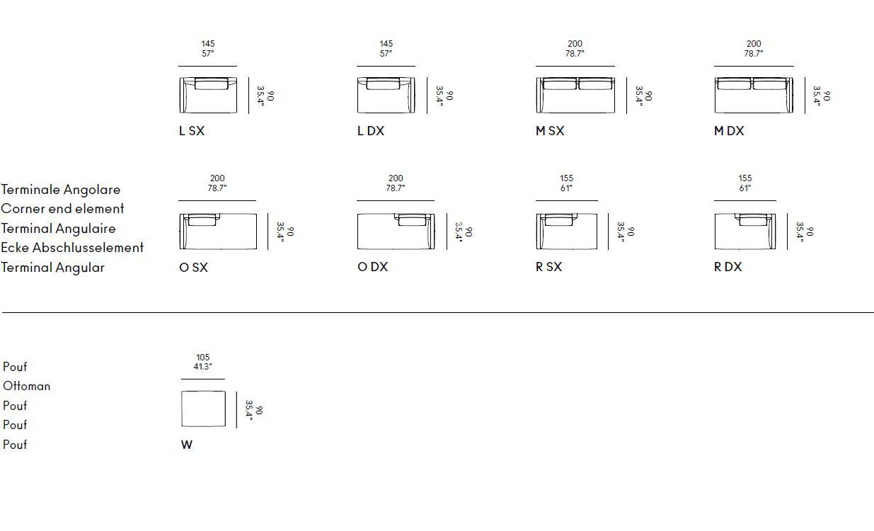 Nella sua versione componibile, Billie diventa un progetto aperto e flessibile, pensato per ambienti residenziali e conviviali dove il comfort si unisce alla socialità. Gli elementi modulari — terminali, angolari, chaise longue e sedute centrali — si combinano tra loro per creare composizioni su misura, lineari o articolate, sempre coerenti per proporzione e armonia visiva.