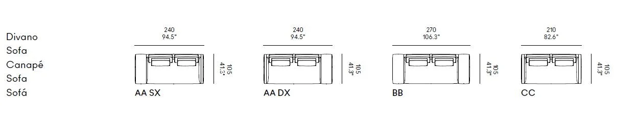 Dizzy è un divano di design dalle forme equilibrate e contemporanee, caratterizzato dal piede alto in alluminio che solleva la struttura da terra, conferendole una leggerezza visiva inconfondibile. Questa soluzione, oltre a valorizzare il profilo estetico del divano, ne agevola anche la manutenzione e la pulizia quotidiana.