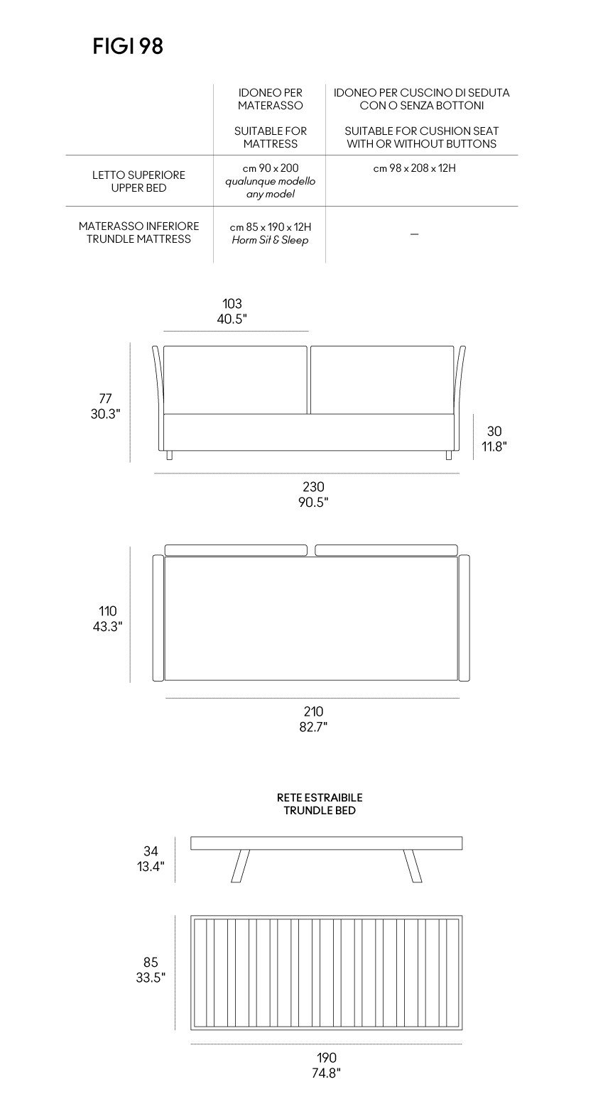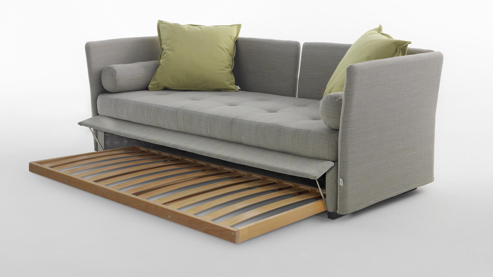 Il sistema estraibile permette di passare con naturalezza dalla funzione di seduta conviviale a quella di letto doppio, con una linea estetica pulita e contemporanea.