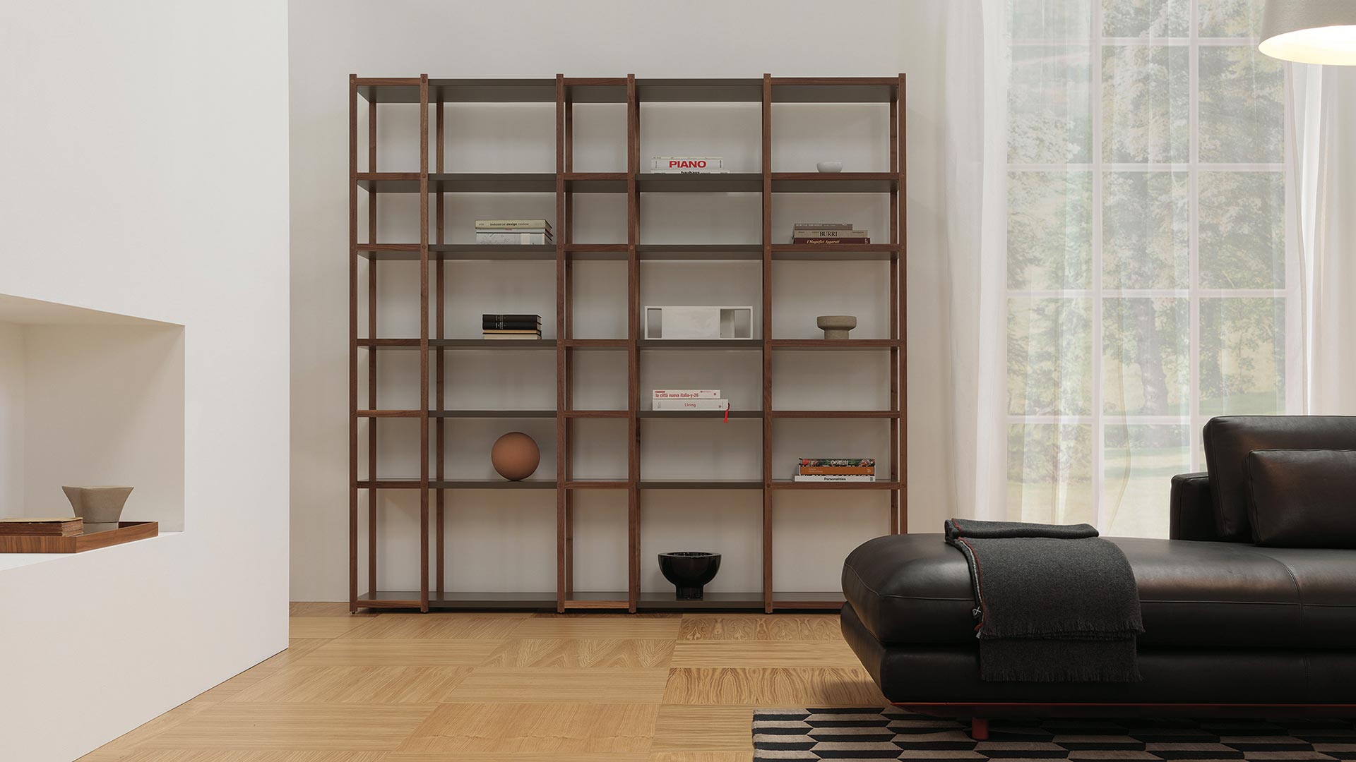 Ogni dettaglio, dalla calibratura delle spallette alla variazione delle altezze tra i ripiani, è pensato per generare un ritmo visivo dinamico e mai scontato. La precisione costruttiva e la qualità dei materiali esprimono il valore autentico della manifattura Made in Italy, dove la sobrietà diventa sinonimo di eleganza senza tempo.
