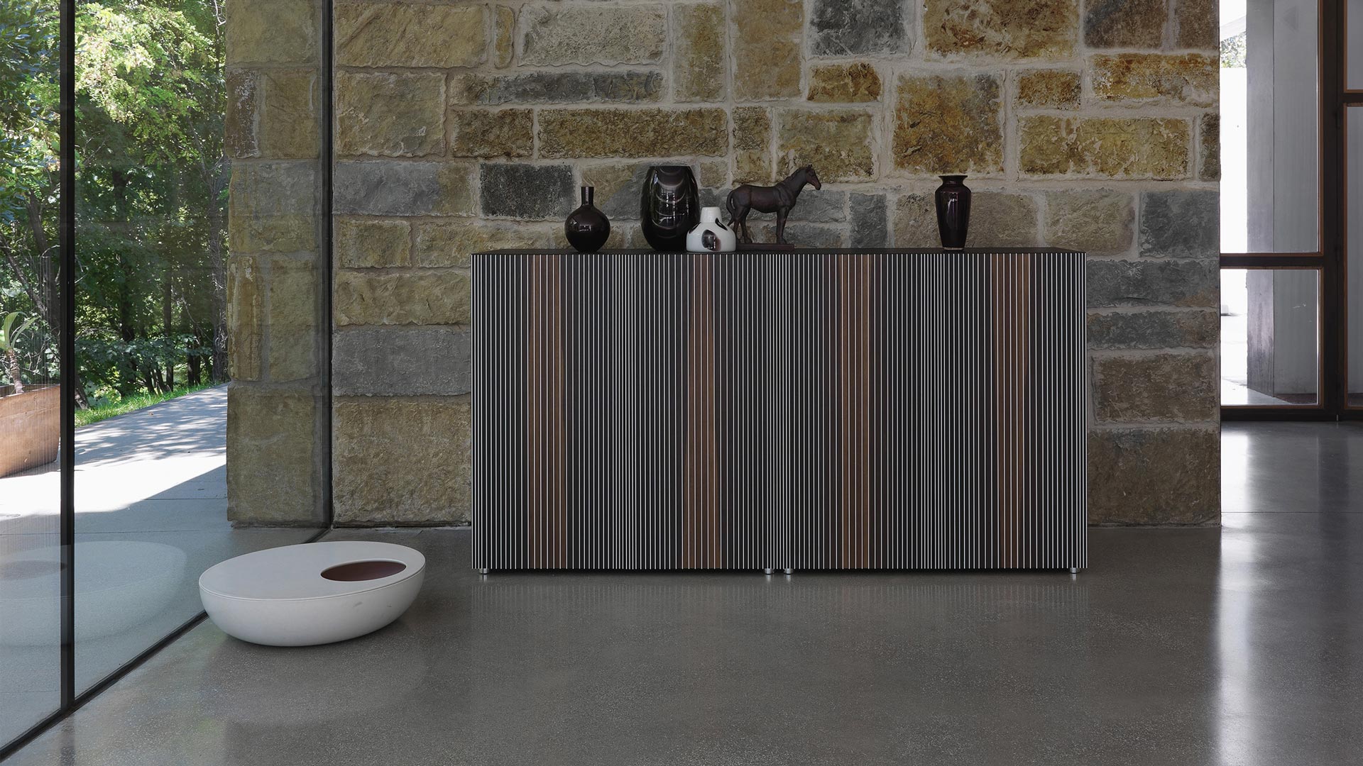 Disponibile in due altezze, h66 e h98, Carlos si adatta con naturalezza a diverse esigenze d’arredo: la versione più bassa è perfetta come madia porta TV, unendo funzionalità e raffinatezza formale, mentre l’altezza maggiore valorizza la presenza scultorea dell’arredo in sala da pranzo o in ambienti di rappresentanza.