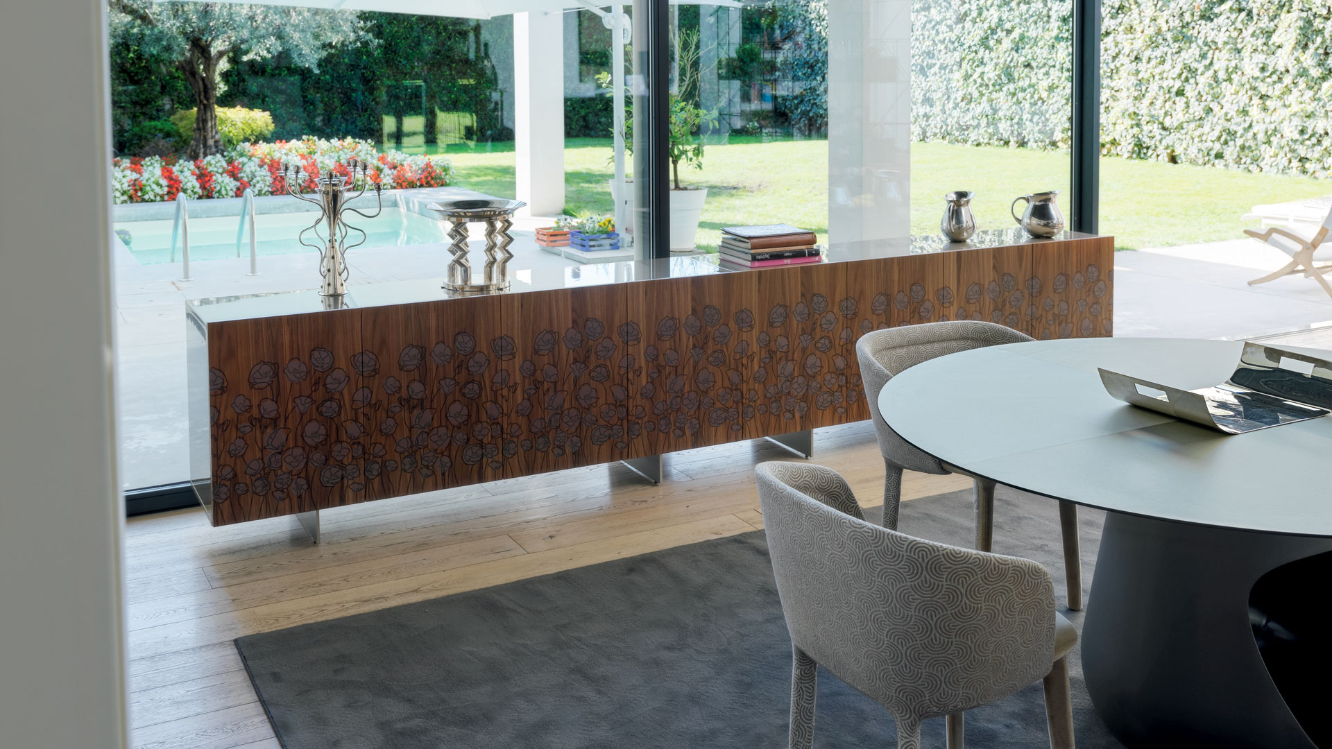 Le Jardin combina arte decorativa e design moderno in una madia dallo stile raffinato e distintivo.