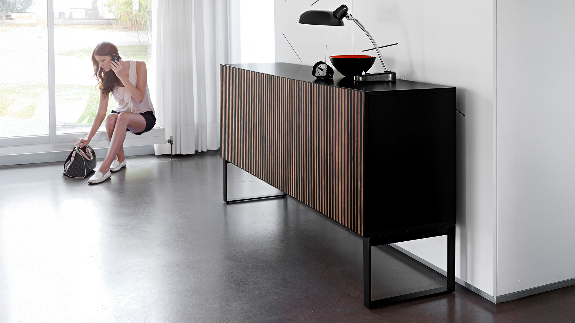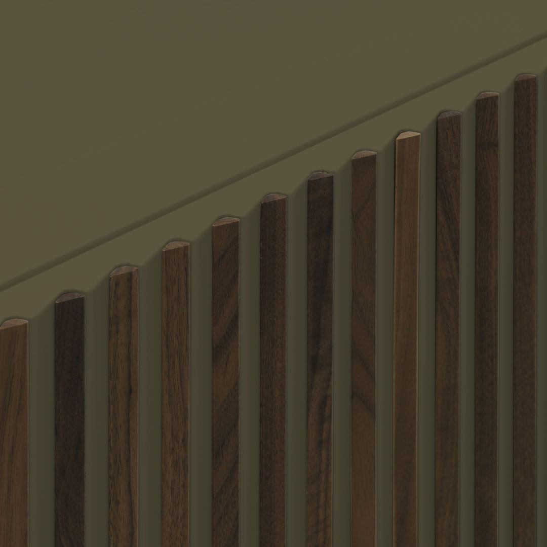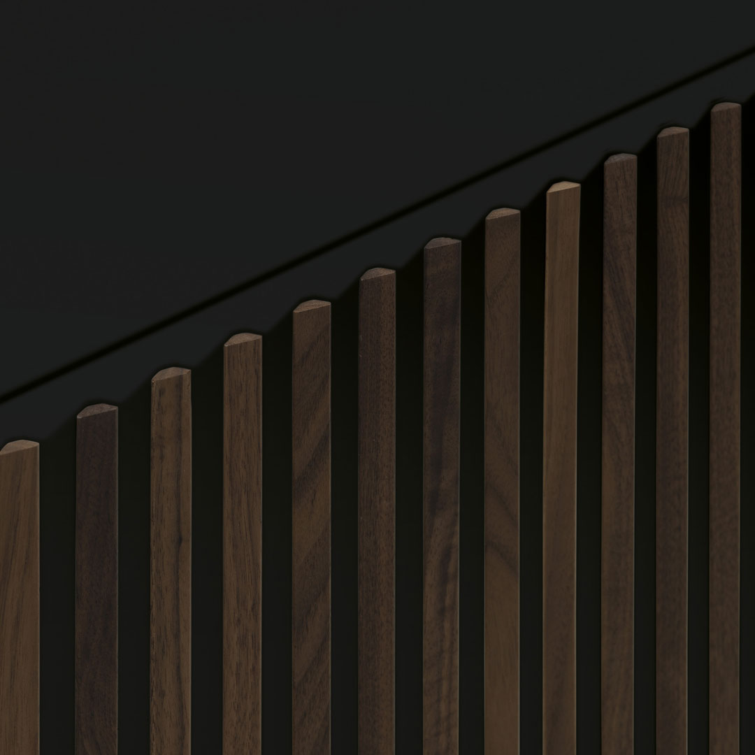I listelli di legno sul frontale e le campiture laccate di Leon Decor generano un cambio di colore intuitivo: guardandolo da destra prevale il corpo laccato, da sinistra spiccano i decori in essenza, come un piccolo esperimento di percezione da vivere ogni giorno. La composizione rimane ordinata, ma mai statica: è un accento sofisticato per interni contemporanei che cercano rigore, versatilità e identità visiva.