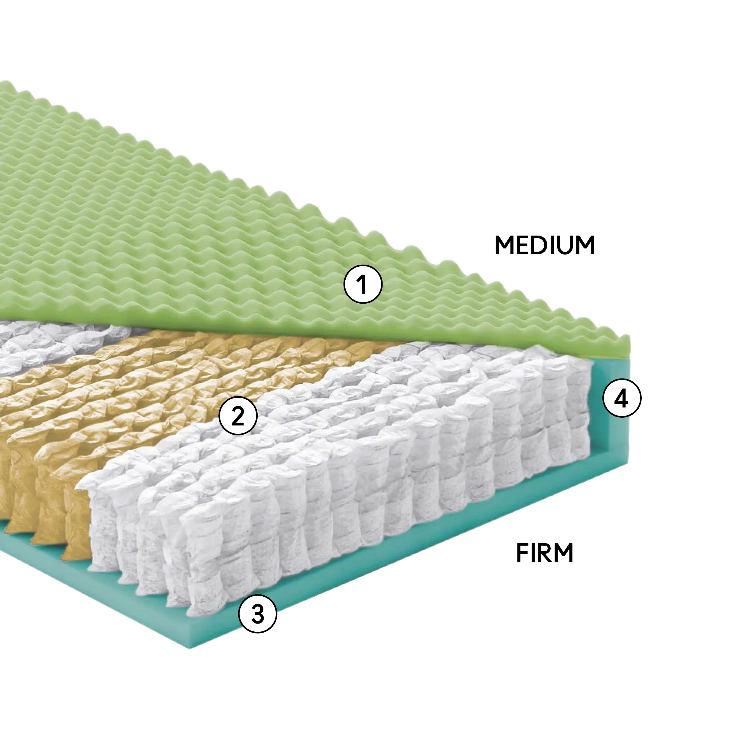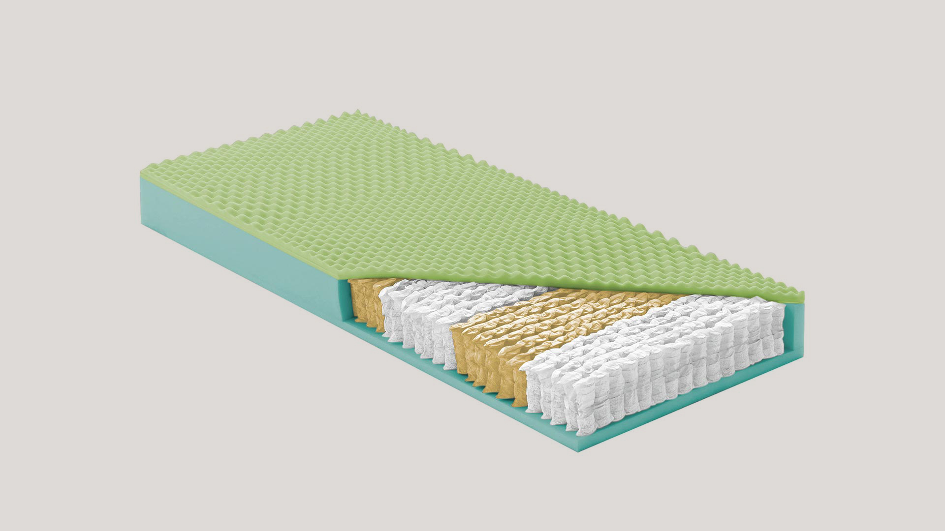 (4) > Sistema box perimetrale in Eco-TPU indeformabile: una cornice strutturale che avvolge il pacco molle e serve a evitare cedimenti sui bordi, aumentare la superficie utile e preservare la forma nel tempo.