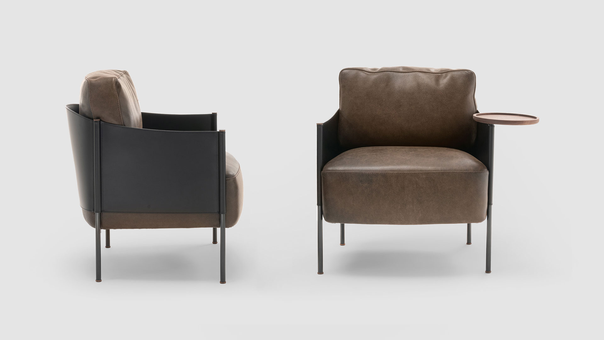 SC1 è una poltrona elegante e compatta, pensata per interpretare il concetto di lusso domestico contemporaneo anche negli spazi più contenuti. Le gambe in metallo verniciato nero sostengono una cuscinatura generosa e avvolgente, che invita al relax con naturale equilibrio tra comfort e rigore formale.