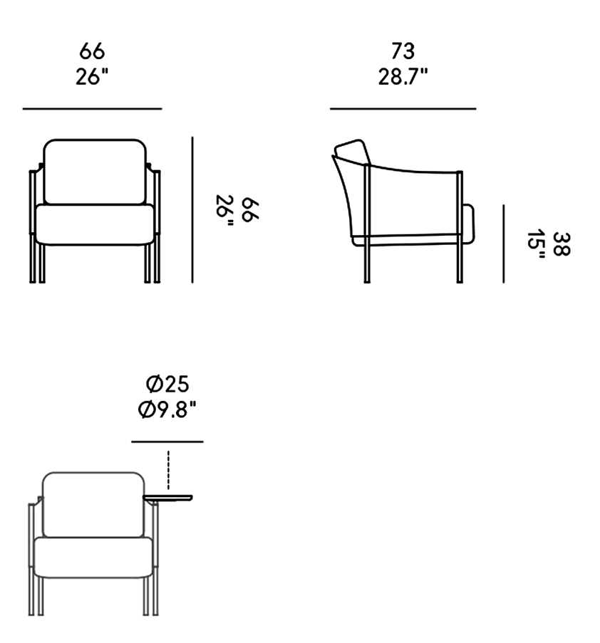 Come optional, SC1 può essere dotata di un portabicchieri girevole, discreto e funzionale, che amplifica la versatilità della poltrona in ambito domestico, hospitality o lounge.