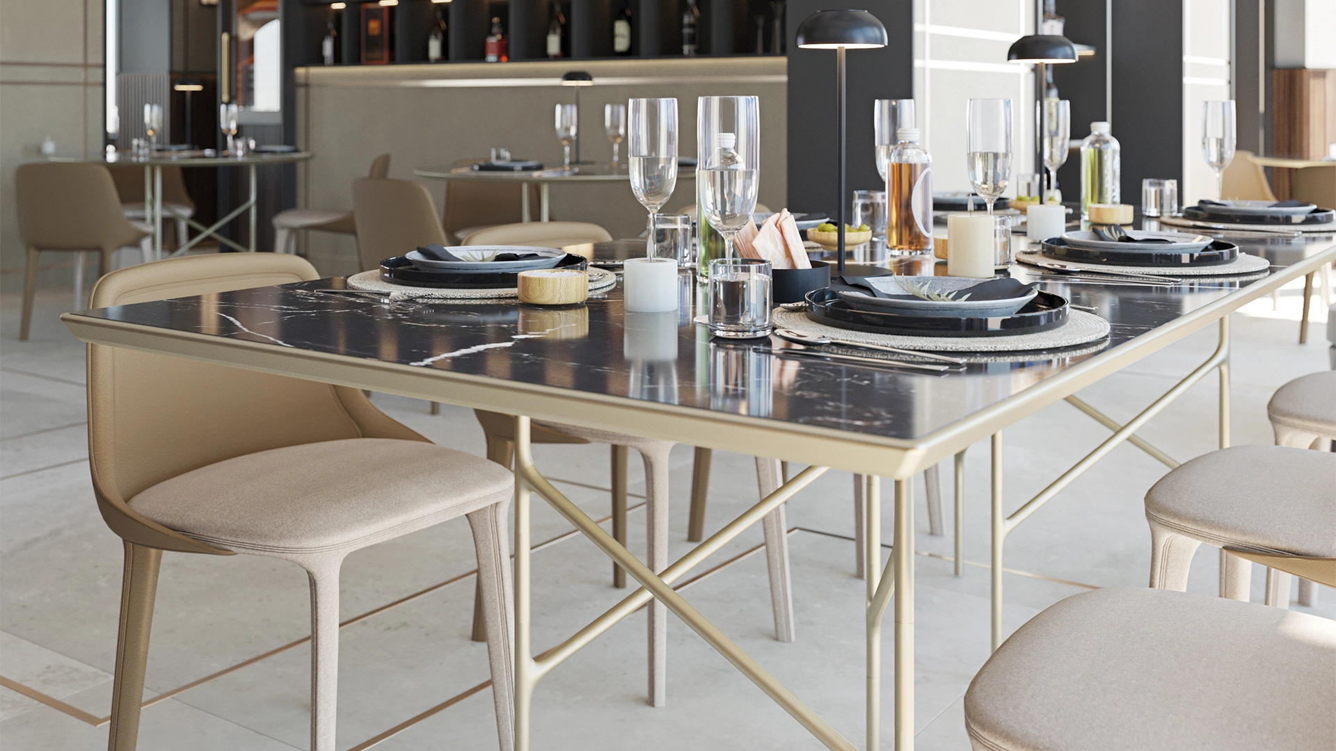 Alexander interpreta il tavolo di design come sintesi tra rigore e flessibilità compositiva. La struttura metallica, ispirata alle connessioni ferroviarie dell’omonima piazza berlinese, si articola in un elegante intreccio di elementi tubolari collegati da giunti a Y, offrendo stabilità e leggerezza visiva. Il piano è disponibile in marmo, Fenix o vetro retroverniciato, in una varietà di finiture che valorizzano ambienti contemporanei di grande raffinatezza.