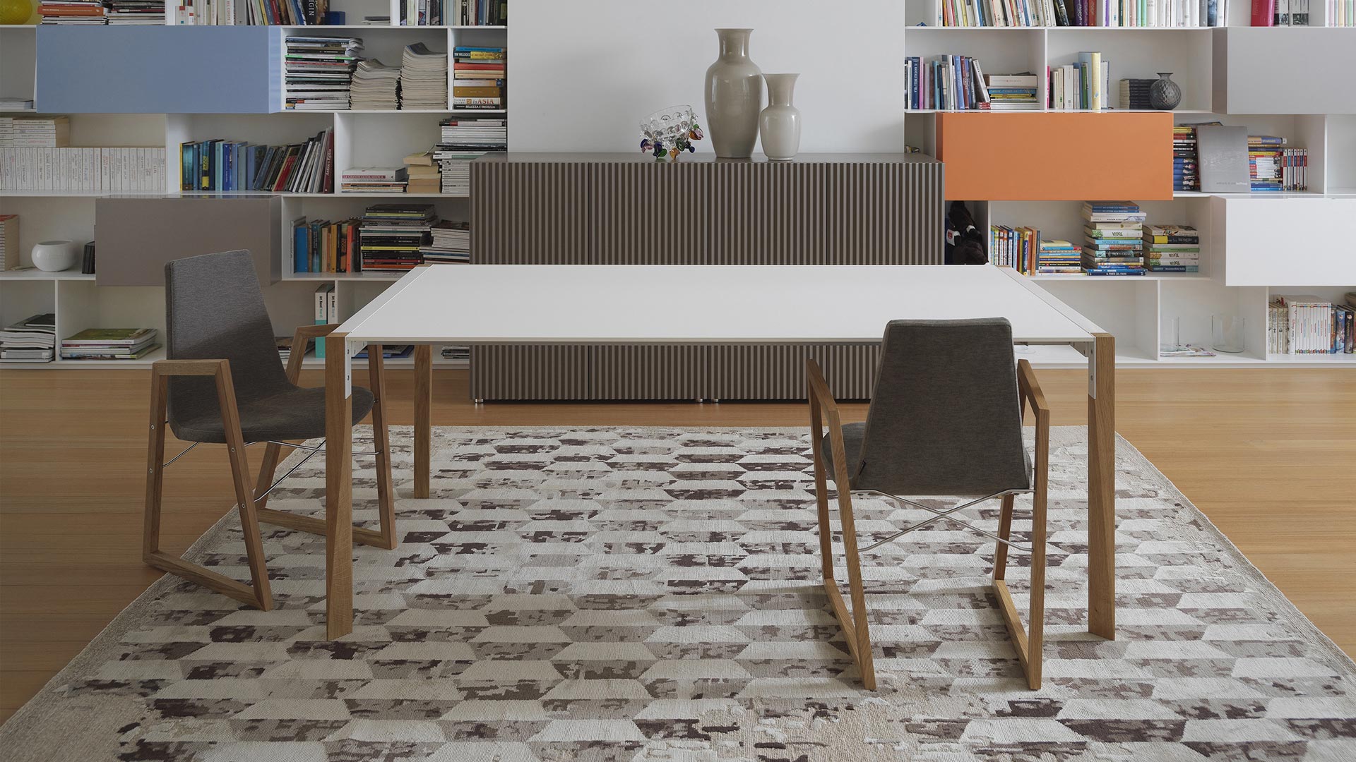 Grazie alla sua architettura sobria e bilanciata, Tango Fisso si inserisce con naturalezza in diversi contesti: dalla zona pranzo domestica agli spazi di lavoro condivisi, dove può diventare una scrivania elegante e funzionale.