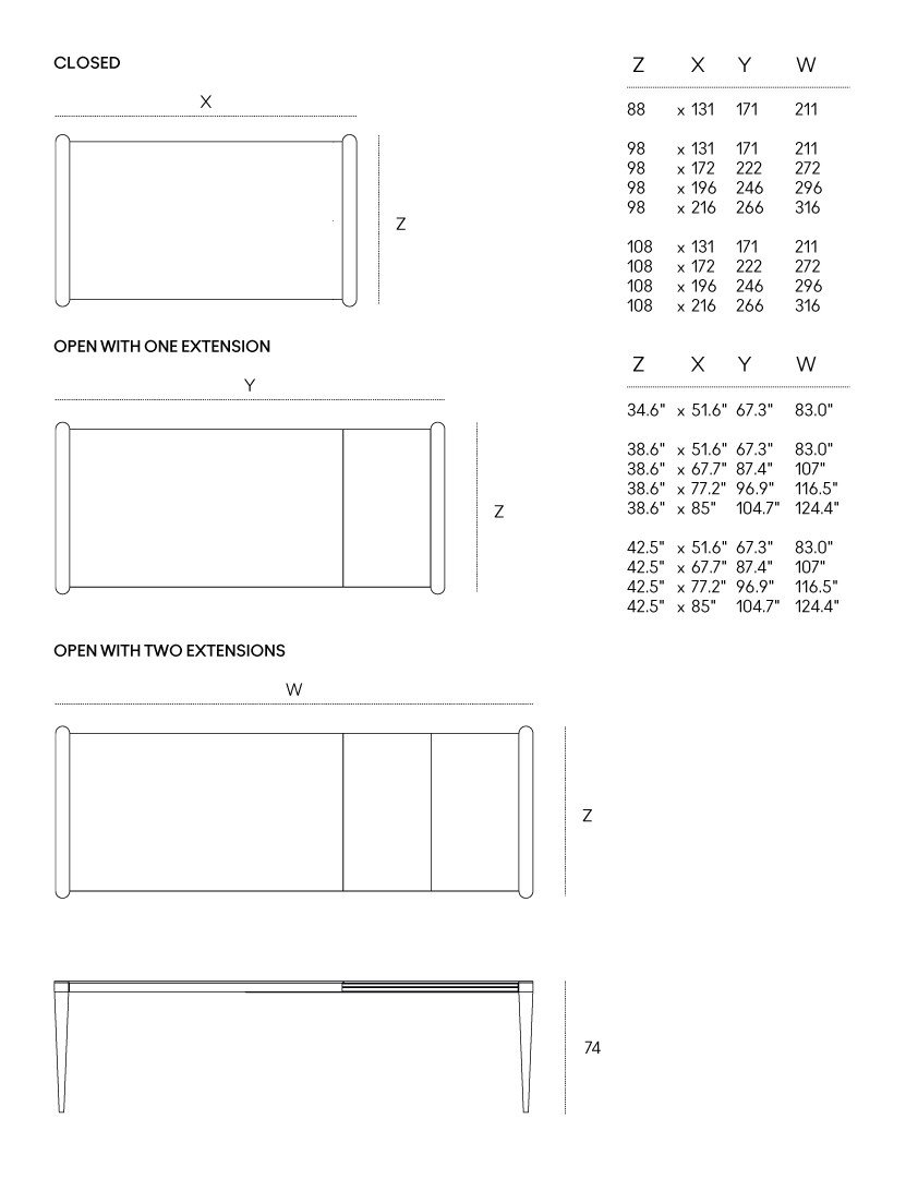 Due allunghe integrate consentono di estendere il piano fino a 40 o 50 cm, oppure 80 o 100 cm, a seconda della configurazione scelta, garantendo massima versatilità d’uso.
