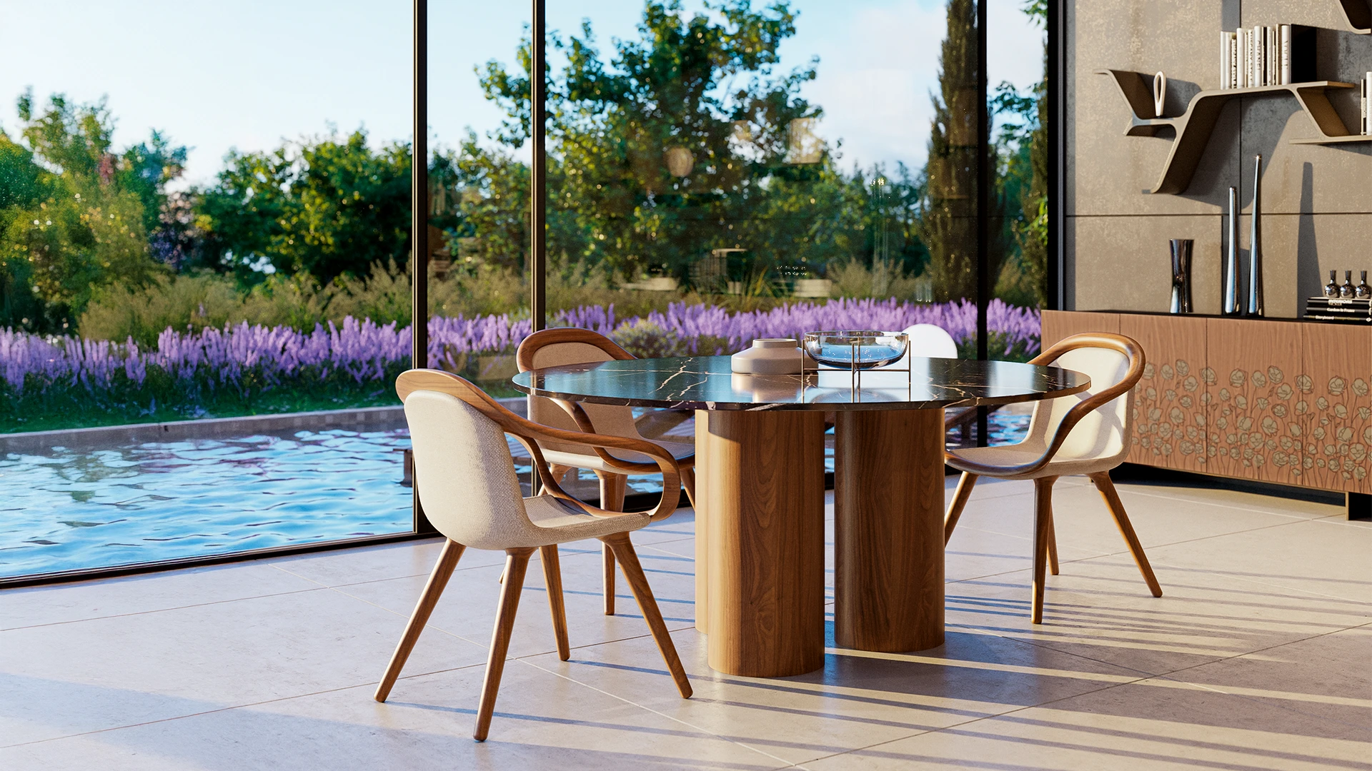 Ispirato alle Marine di Virgilio Guidi, il tavolo traduce la sintesi artistica del maestro in un oggetto di grande forza scultorea. La combinazione tra materiali nobili e forme essenziali fa di Marina RO un elemento ideale tanto per ambienti residenziali quanto per aree lounge, hospitality o boardroom di prestigio, dove il design incontra la rappresentanza.