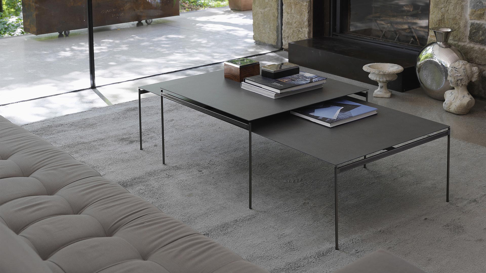 Torii è una collezione di tavolini da soggiorno dal design essenziale e contemporaneo, realizzati in ceramica e metallo crudo per un raffinato effetto post-industriale.