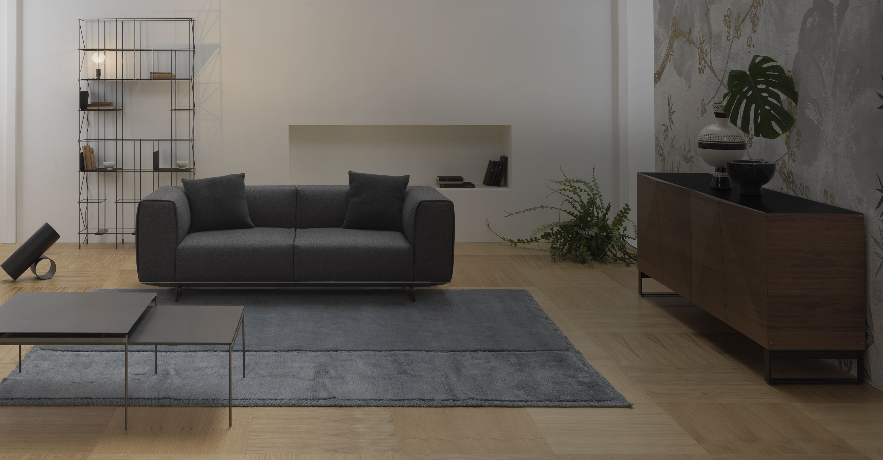 Sealing Coleman's personality are the elegant Canaletto walnut feet, which define its forms. This creates a unique and harmonious design that is perfectly suited to refined and exclusive environments.