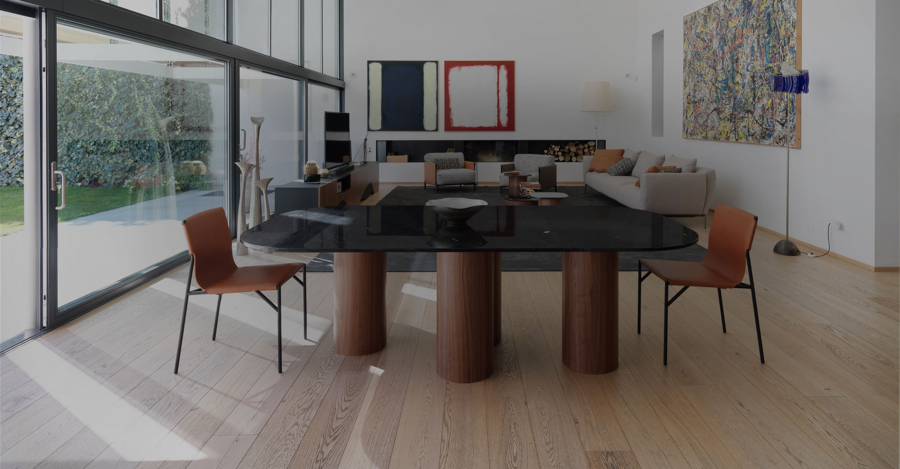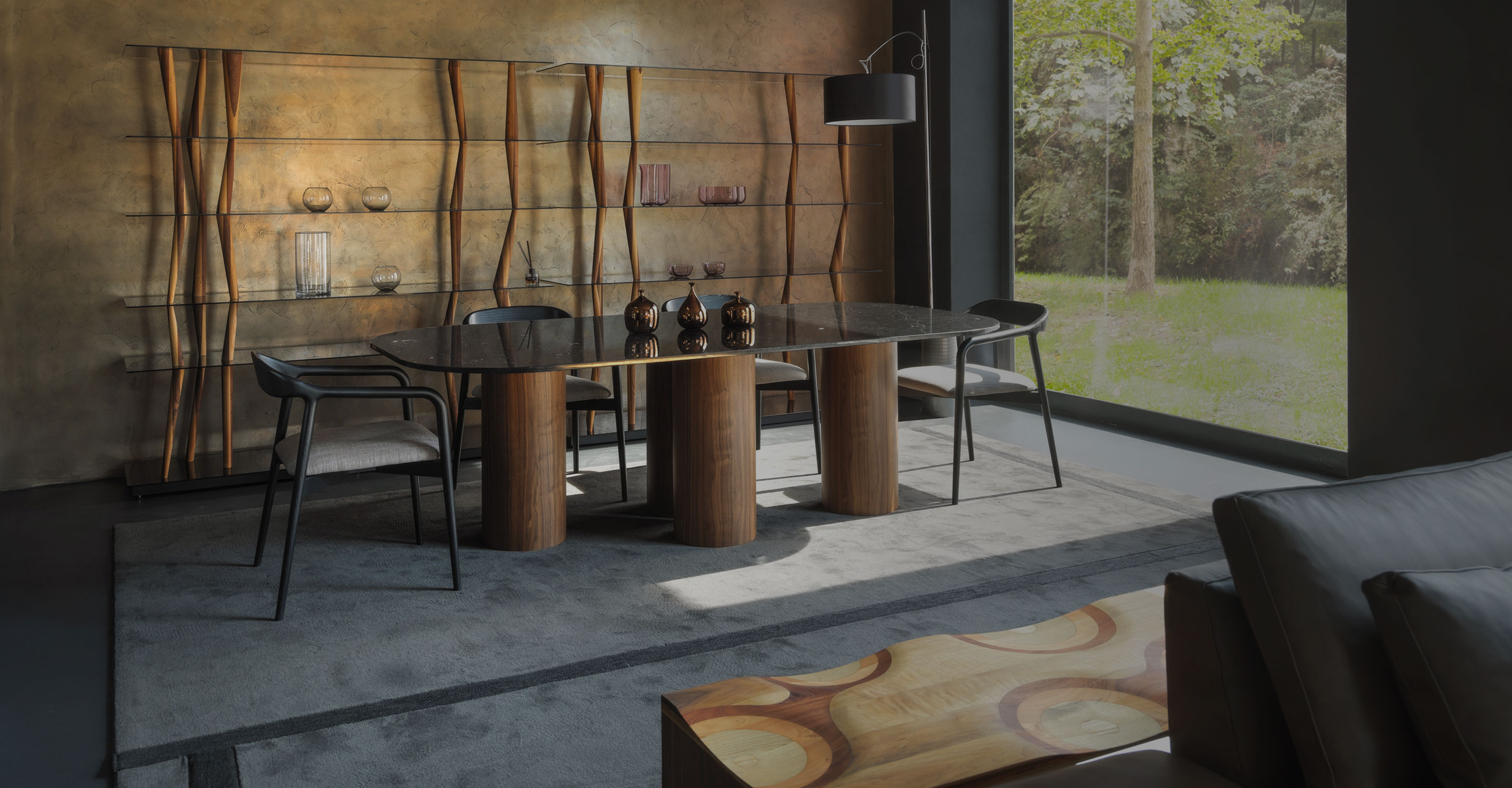The Marina collection synthesises traditional table lines in just a few strokes, eliminating superfluous design, and using wood and marble to create skilful, powerful and evocative shapes.