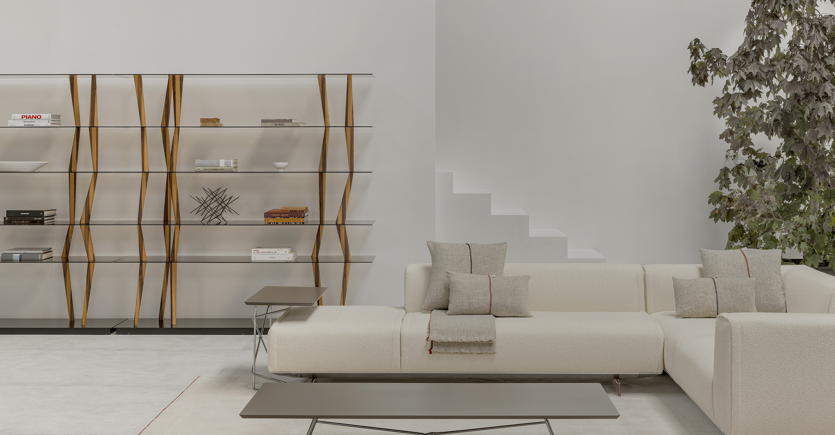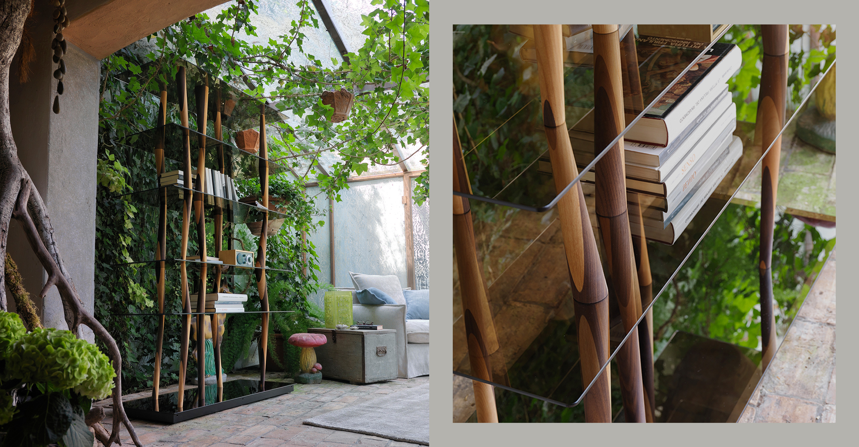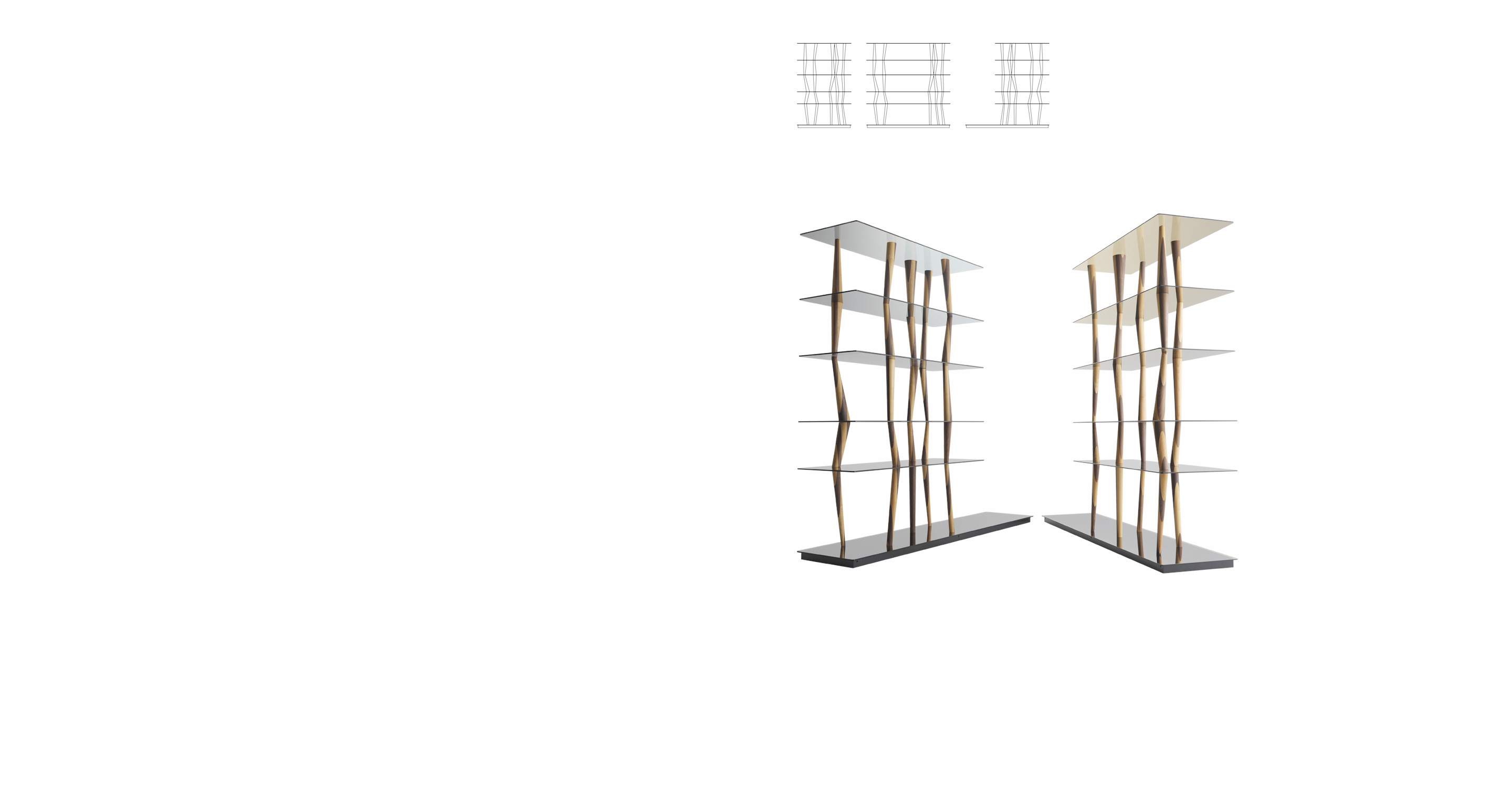 A piece of furniture that strikes and disrupts any concept of design, a true work of art. The common elements are the irregular columns, which create the illusion of extreme lightness and fragility. The flexibility and movement of the uprights contrast with shelves with a strong visual impact.