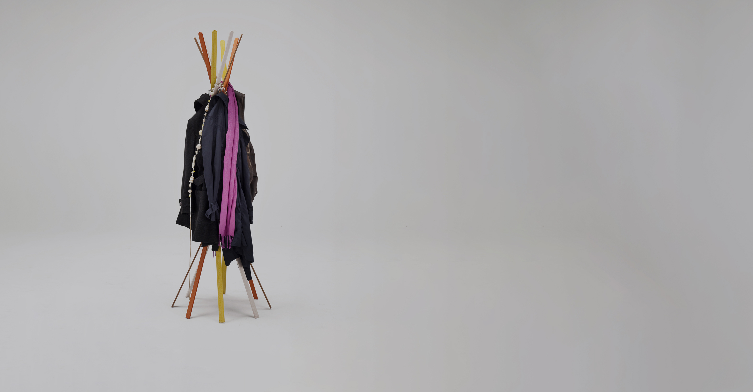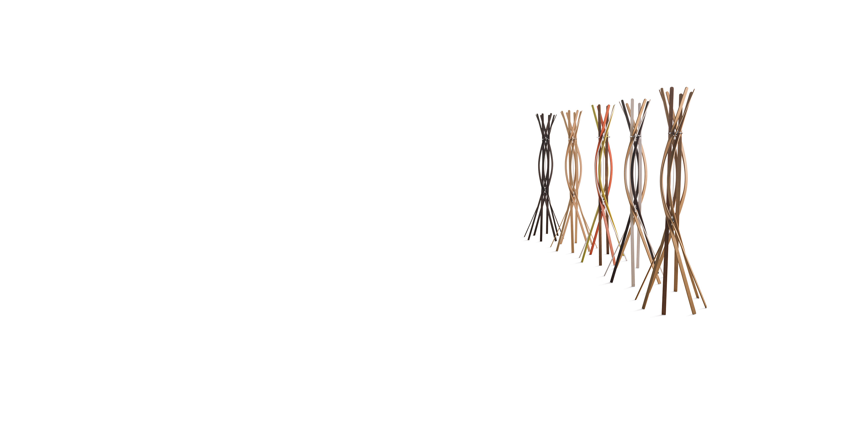 Horm dances to the rhythm of the Twist with the coat stand designed by Burtscher & Bertolini. The eight beechwood slats of its structure bend dynamically to accommodate your garments, as if waiting for your dance partner.